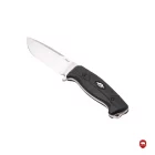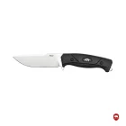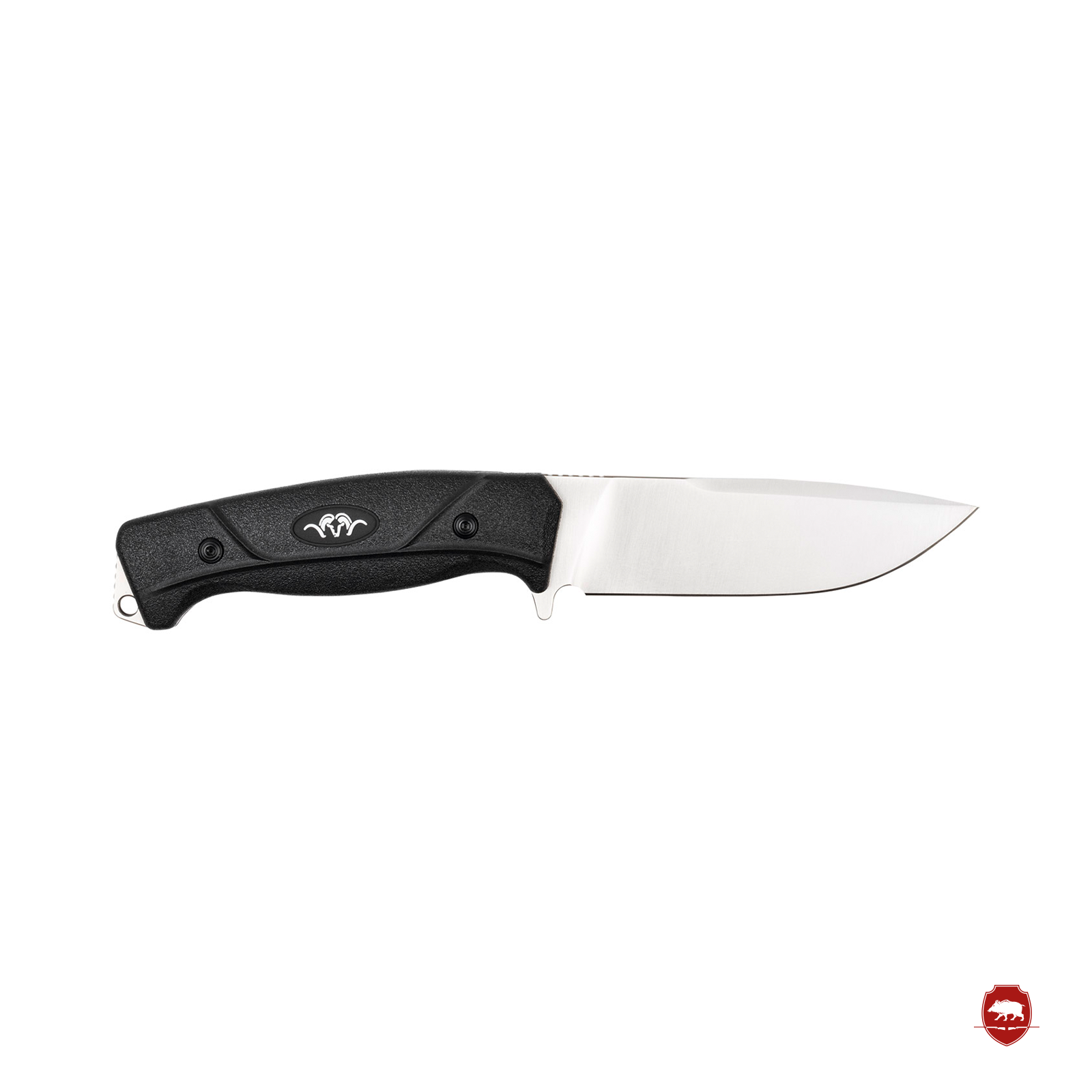 El cuchillo profesional Blaser 110 es un clásico todoterreno. Este cuchillo de caza destaca por el moderno diseño de su mango. Su estilo y forma emulan el diseño de las carrilleras Blaser. El mango de plástico es cómodo de sostener, duradero y resistente. Además, el plástico es fácil de limpiar y resistente a la humedad. Su diseño de espiga completa, con hoja y mango de una sola pieza de acero, garantiza una excelente estabilidad al cortar y destripar, por ejemplo, al abrir una pelvis. Para la hoja se ha seleccionado una forma de punta caída y un resistente acero D2. El acero D2 es afilado, tiene buena retención de filo y es inoxidable. Por lo tanto, es excelente para la caza. El cuchillo se puede guardar de forma segura en la funda de nailon incluida. ¡El cuchillo profesional Blaser 110 es un elemento esencial de cualquier equipo de caza!