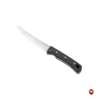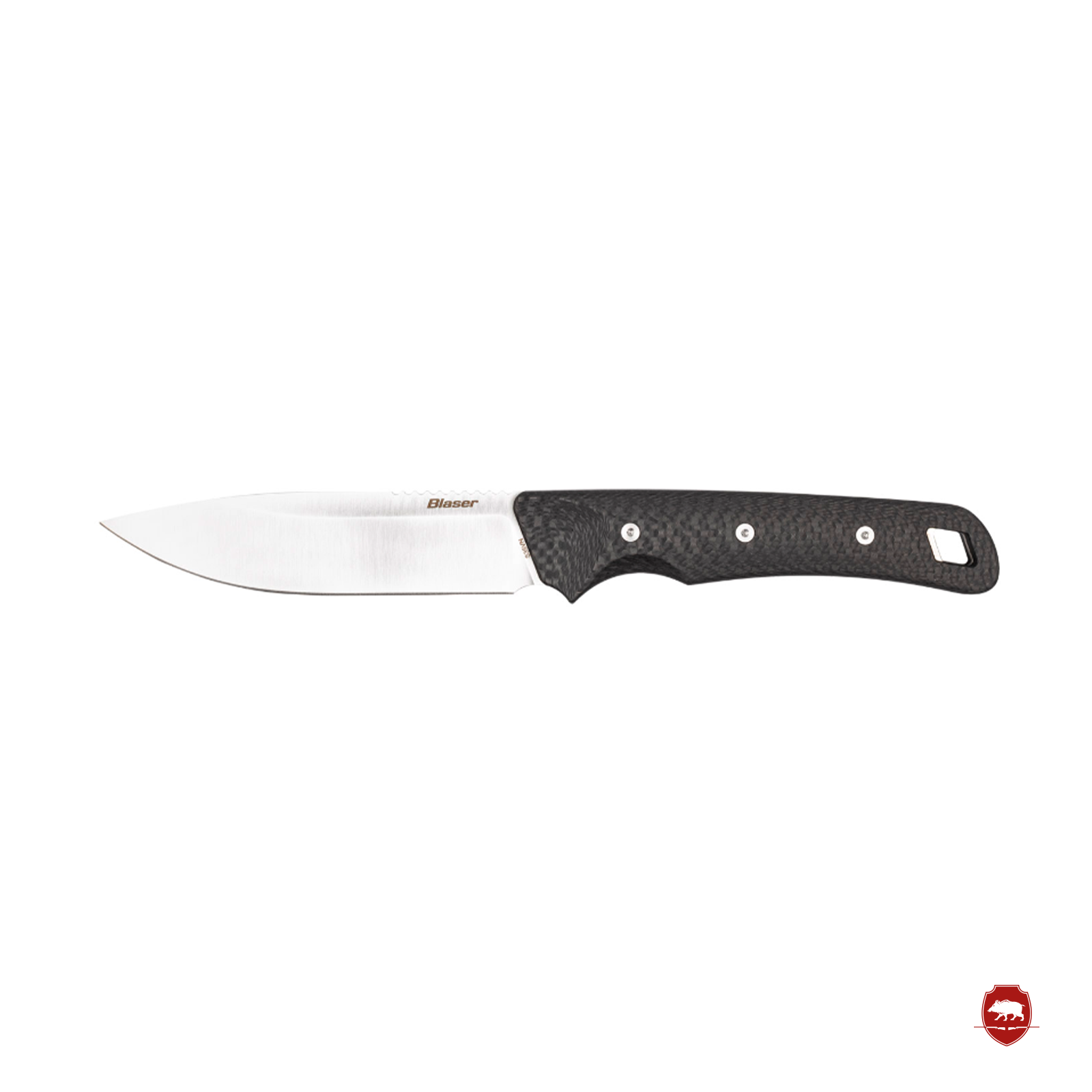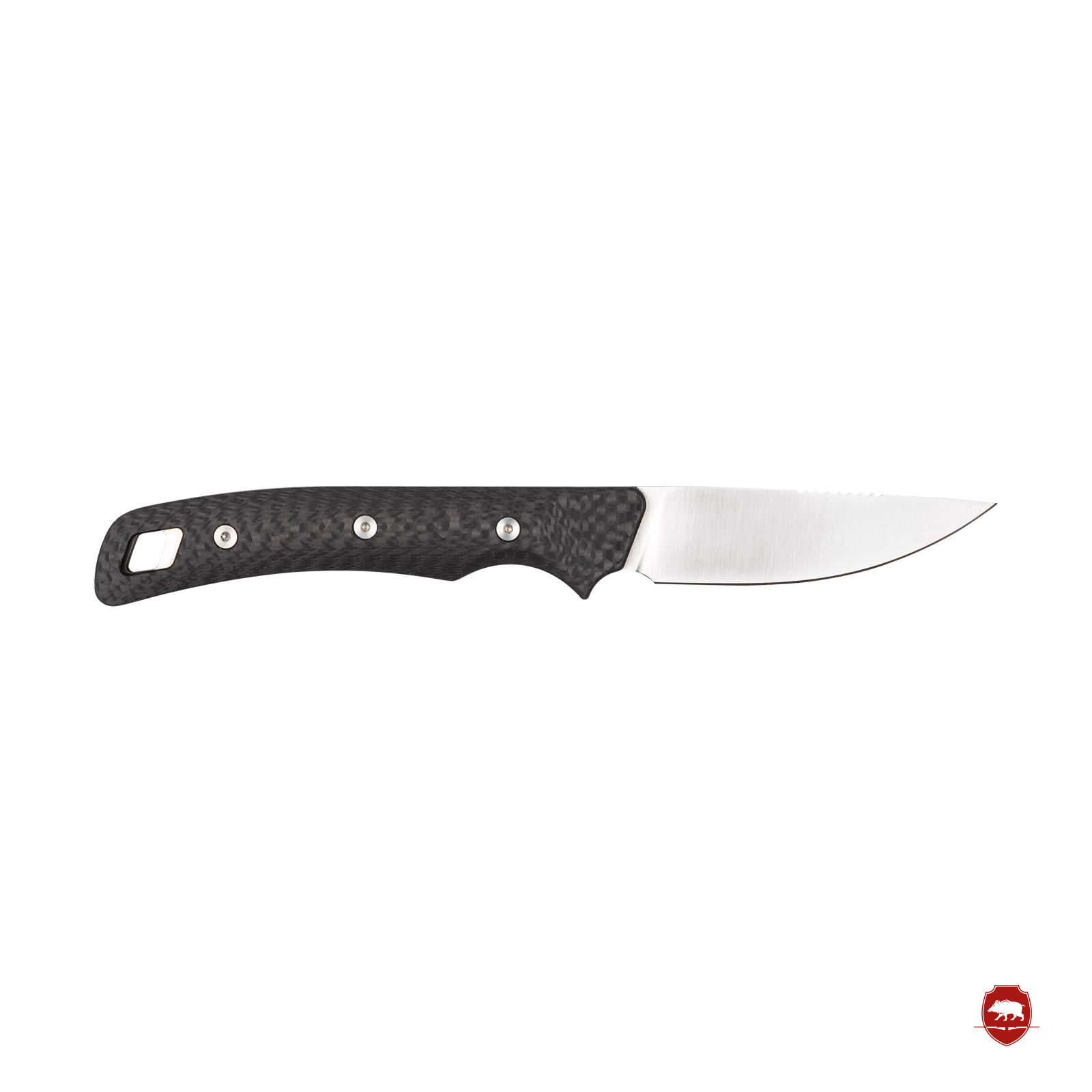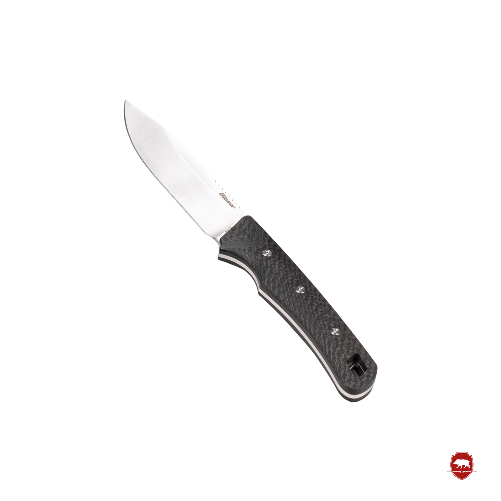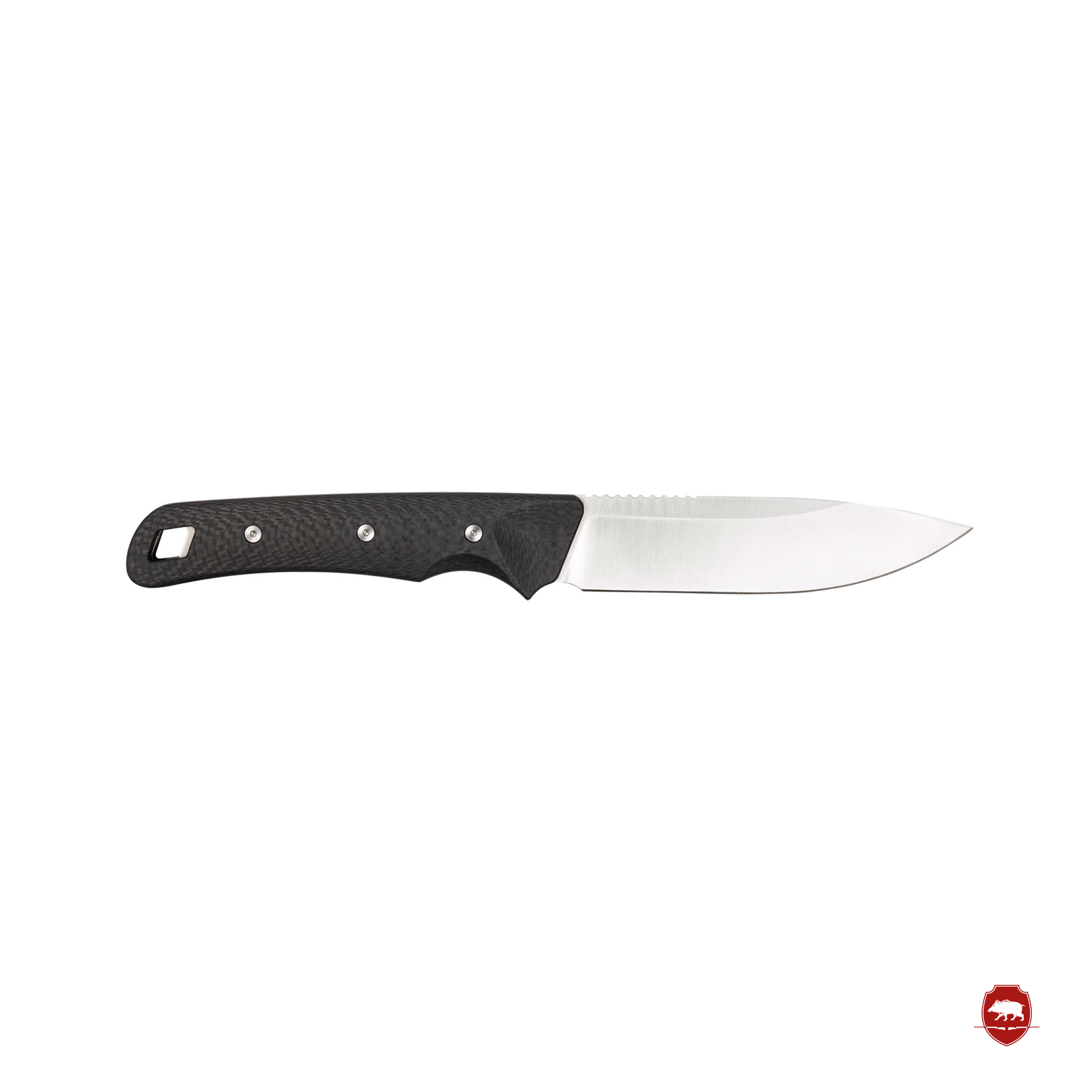 La hoja de punta caída, con una longitud de 11 cm, es ideal para la caza y garantiza una estabilidad excepcional en todas las actividades. El afilado de la hoja y la robustez de su cuerpo lo hacen ideal para trabajos delicados. Las cachas de carbono con triple perno completan el conjunto y lo convierten en un cuchillo de caza robusto y de alta calidad.