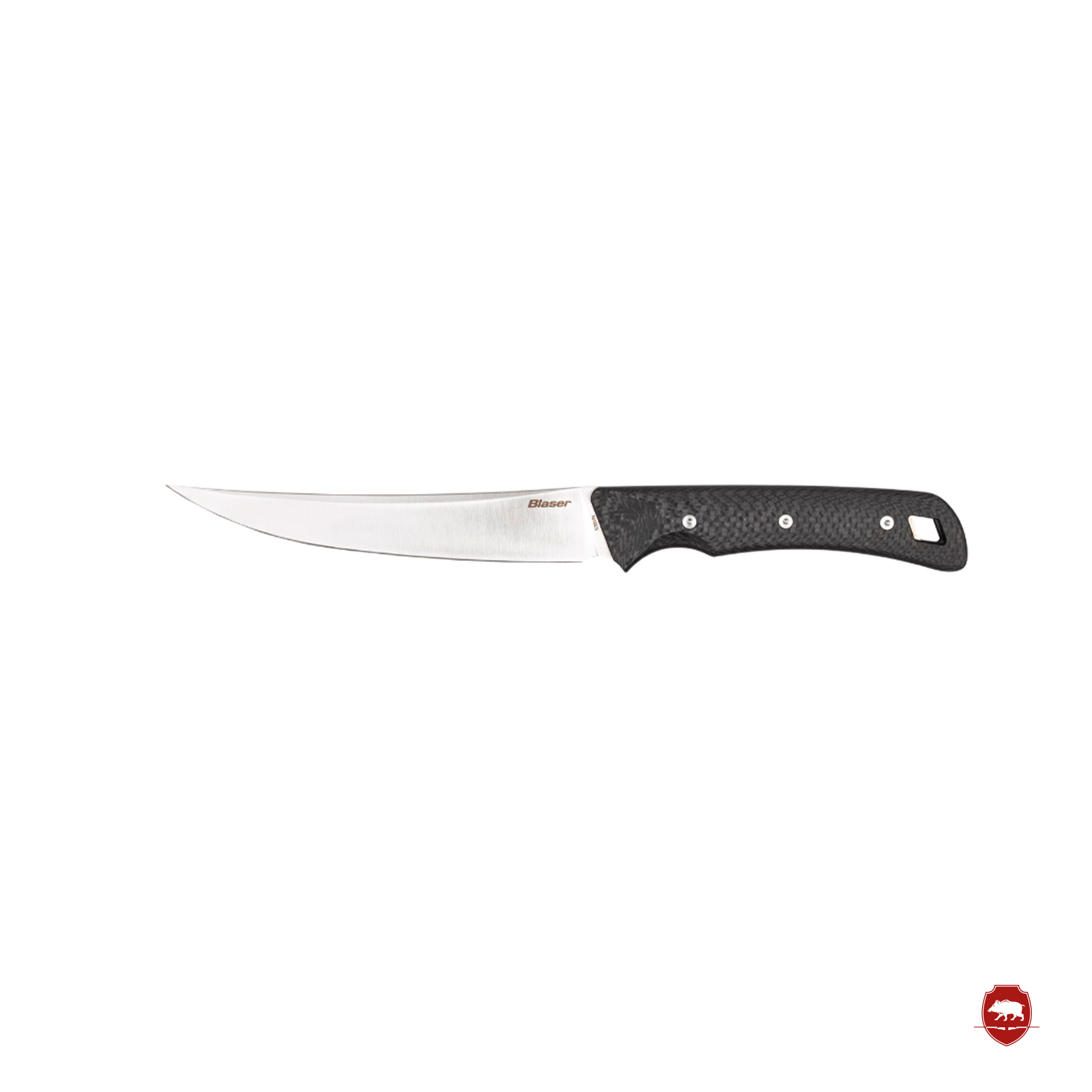 El cuchillo Blaser Ultimate Carbon 150 forma parte de nuestra serie de cuchillos Ultimate Carbon de alta calidad. Este cuchillo presenta el mismo diseño atractivo que el R8 Ultimate. Gracias a su funda de Kydex con clip para cinturón y a su peso ligero de 126 g, se puede sujetar perfectamente al cinturón y es apto para cualquier uso en exteriores, pero también en la cocina. La hoja está fabricada en acero CPM S35VN, lo que le confiere una excelente retención del filo. Gracias a su composición química, este acero también se caracteriza por su excelente resistencia al desgaste y a la corrosión. La forma de la hoja, similar a la de un cuchillo fileteador, y su longitud de 15 cm la hacen ideal para despiezar piezas de caza, así como para el posterior procesamiento de la carne. Las cachas del mango de carbono con triple atornillado completan el conjunto y convierten al cuchillo en un producto robusto y de alta calidad. Este material no solo garantiza una apariencia atractiva, sino también un agarre muy cómodo y eficaz.