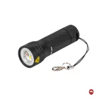 Su carcasa de aluminio T6 es resistente al agua y a impactos. Funciona con una pila AAA convencional, lo que facilita su uso y cambio sin depender de recarga eléctrica.